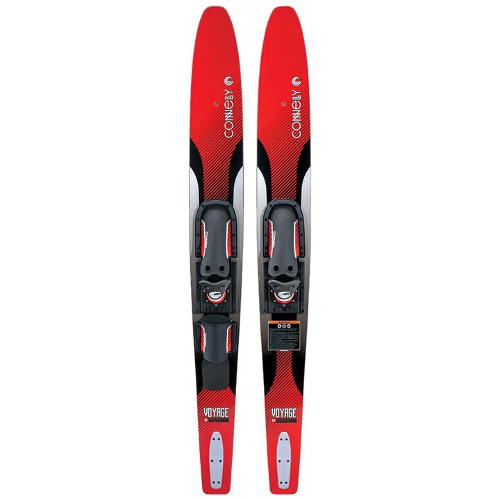 Connelly’s Voyage Combo Water Ski uses a traditional shape with a slightly wider frame, specifically under the bindings, and going back to the tail. The extra surface area makes getting up and out of the water easier, while providing you with stability to perfect your balance and stance. Step base technology through the bottom tunnels reduces drag and gives the skis a maneuverable feeling.