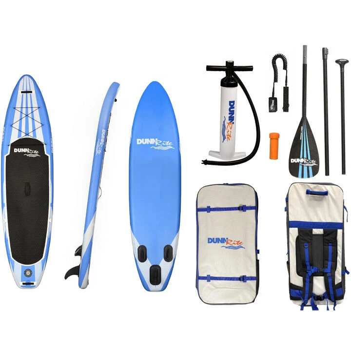 Constructed with military grade PVC, this Dunn-Rite Blue with White 11′ 0″ Inflatable SUP is extremely rigid and durable! When fully inflated, you will be shocked at how firm this board feels! It comes with a beautiful, light and durable Carbon Fiber Adjustable Paddle that is half the weight and twice the strength of aluminum and fiberglass paddles. The paddle floats in water and breaks down into 3 separate pieces in order to easily fit into your provided SUP travel carry bag.