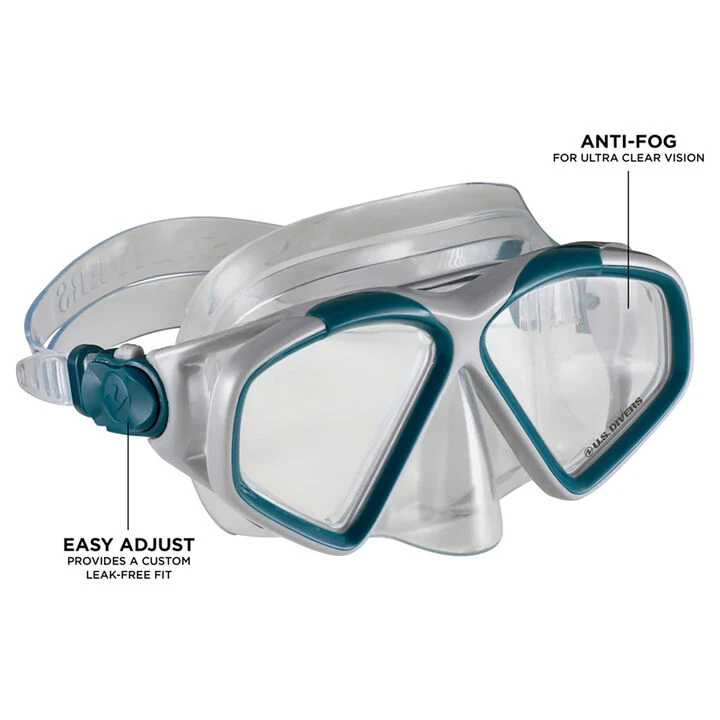 The U.S. Divers® Cozumel TX Snorkeling Mask boasts crystal-clear vision underwater from the high-quality, Tempered Lens with Anti-Fog Technology coating. A soft TPR face skirt comfortably seals against the face for leak-free snorkeling, while the three-way Pro-Glide Buckles are easily adjustable, and the Split Strap provides a flexible and secure fit.